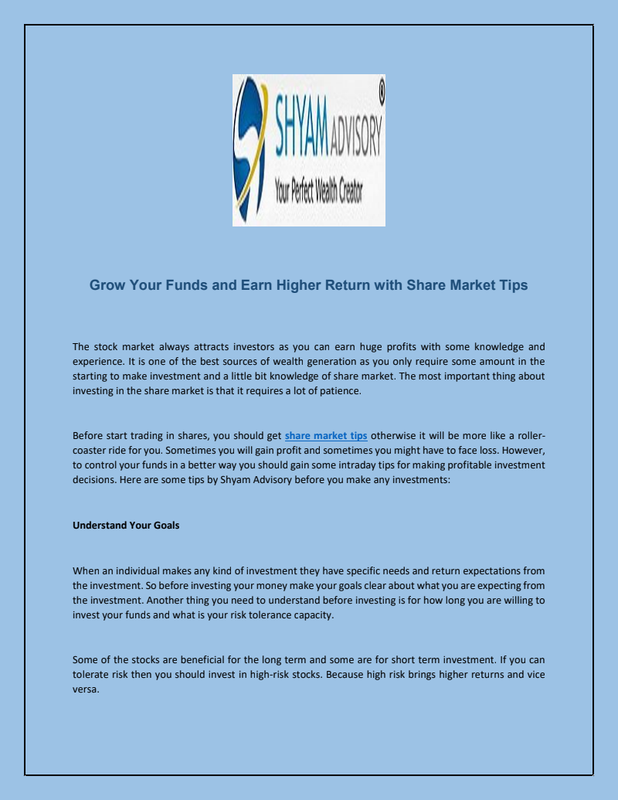 Grow Your Funds and Earn Higher Return with Share Market Tips