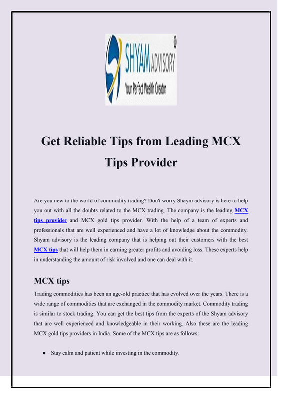 You can take help from the experts of the Shyam advisory that have a team of experts who are well experienced in the commodity market and know how to make the investment more efficiently.