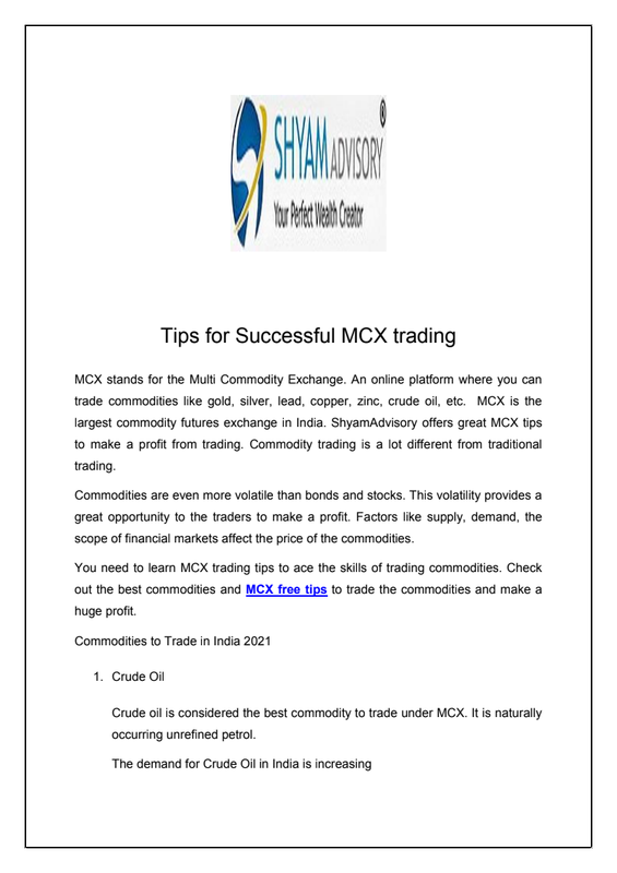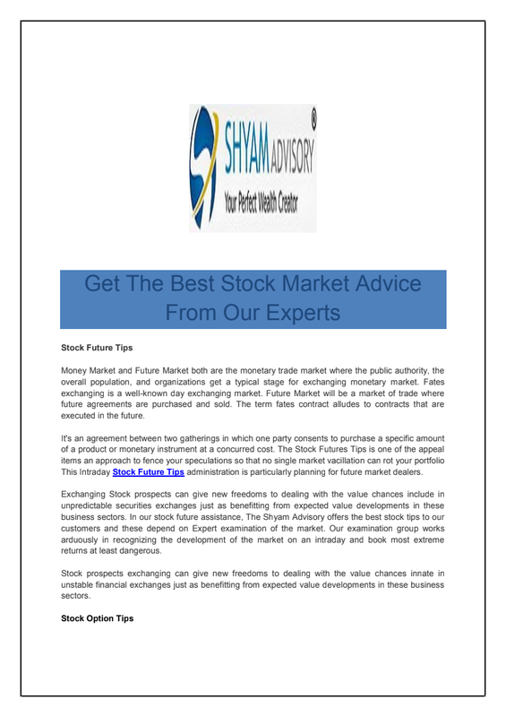Get it from the Shyam advisory that provides best stock option tips with their experts who have a lot of knowledge regarding the stock market as well as the stock option. Because of this they can provide you with the best stock option tips and make your investment worth everything.
